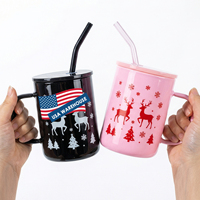 Magazzino USA Spedizione Gratuita Tazze in Vetro Riutilizzabili da 17oz Nero Rosa per Sublimazione con Coperchi e Cannucce per Regali di Natale