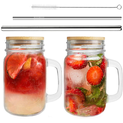 Самые продаваемые товары, экологически чистые, для путешествий на открытом воздухе, Бамбуковая крышка объемом 16 унций, питьевые очки с широким горлом, каменные банки с соломинкой
