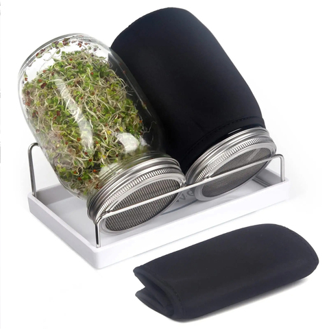 Оптовая продажа, большая банка для выращивания семян с подставкой из нержавеющей стали и черными светонепроницаемыми рукавами, 32 унции
